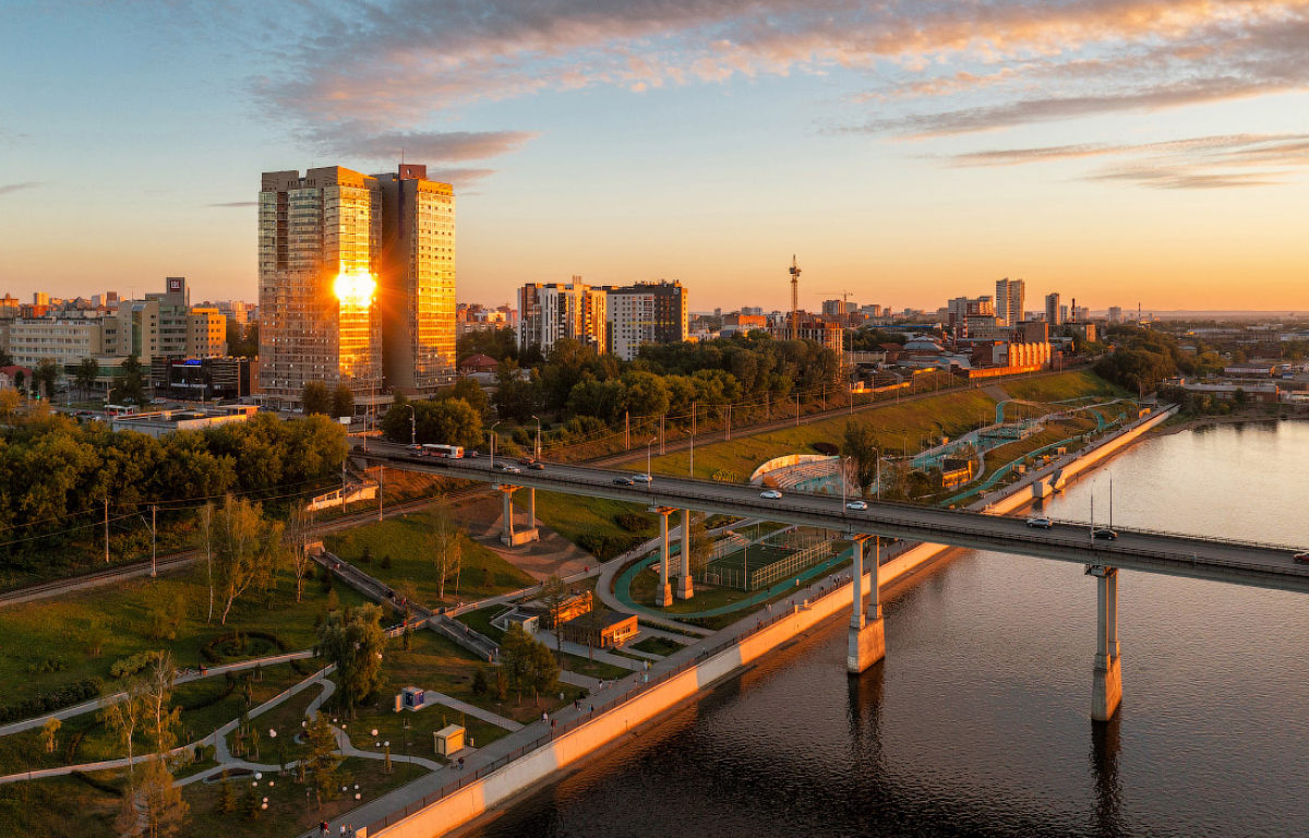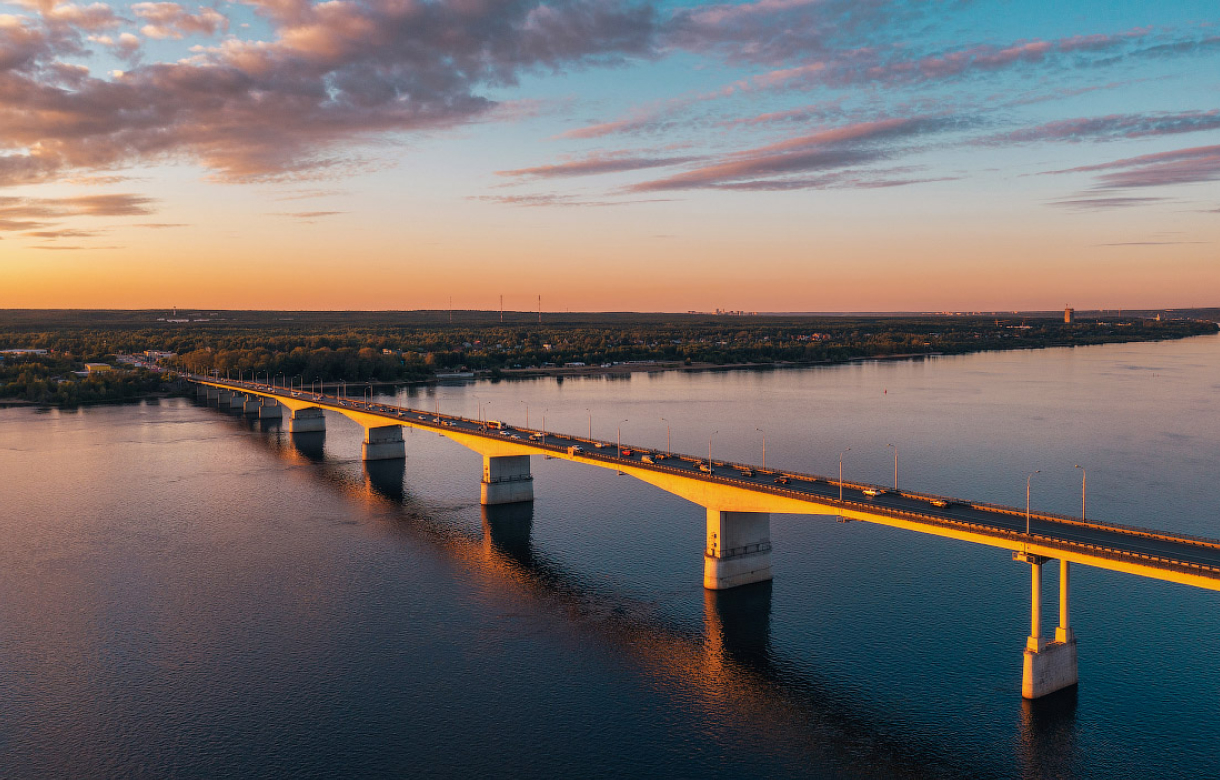 Коммунальный мост. Городской пляж на правом берегу р. Кама